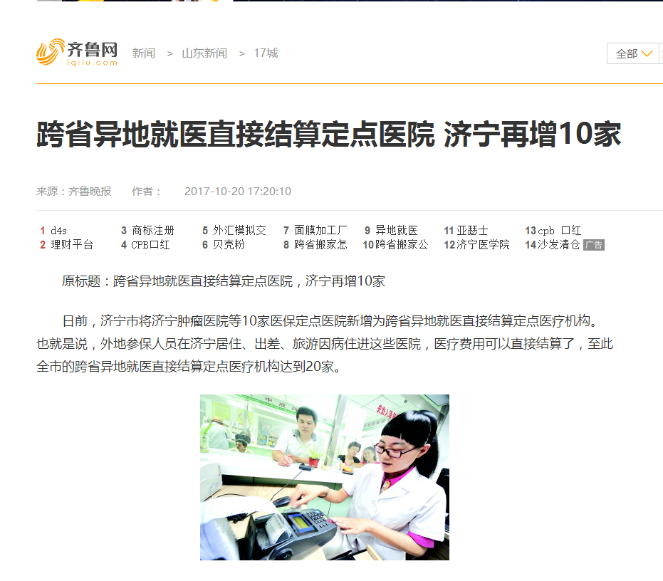 齐鲁网--跨省异地就医直接结算定点医院 济宁再增10家