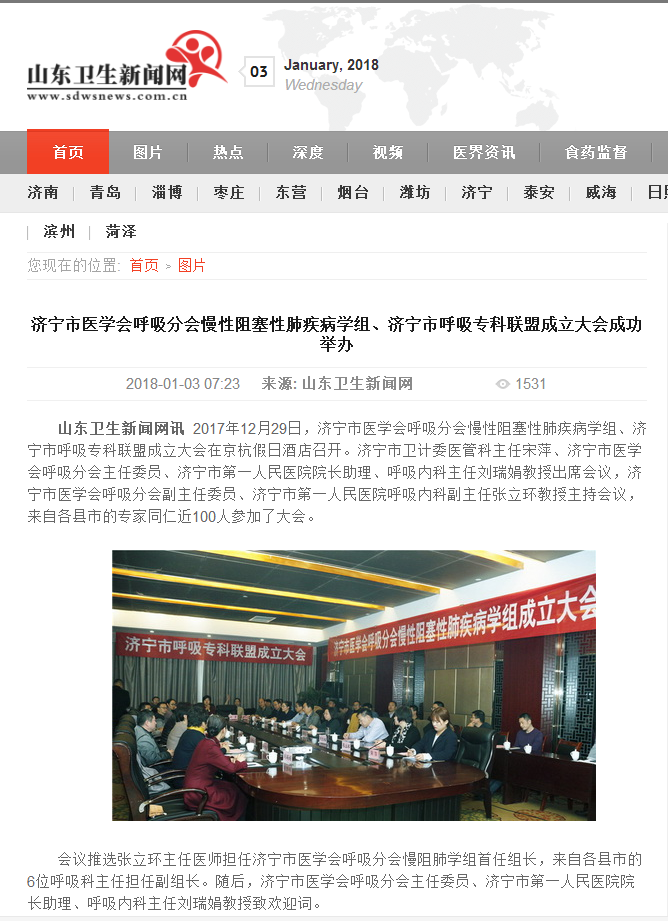 山东卫生新闻网--济宁市医学会呼吸分会慢性阻塞性肺疾病学组、济宁市呼吸专科联盟成立大会成功举办