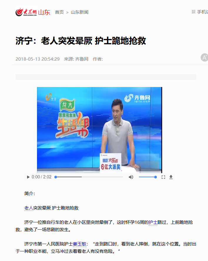 大众网山东--济宁:老人突发晕厥 护士跪地抢救
