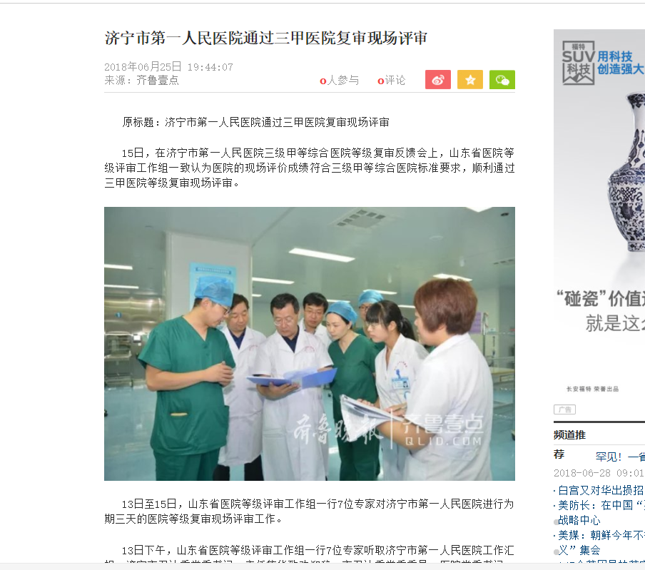 凤凰网--济宁市第一人民医院通过三甲医院复审现场评审