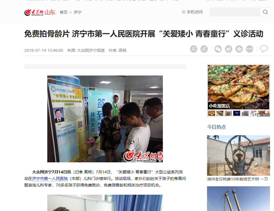 大众网--免费拍骨龄片 济宁市第一人民医院开展“关爱矮小 青春童行”义诊活动