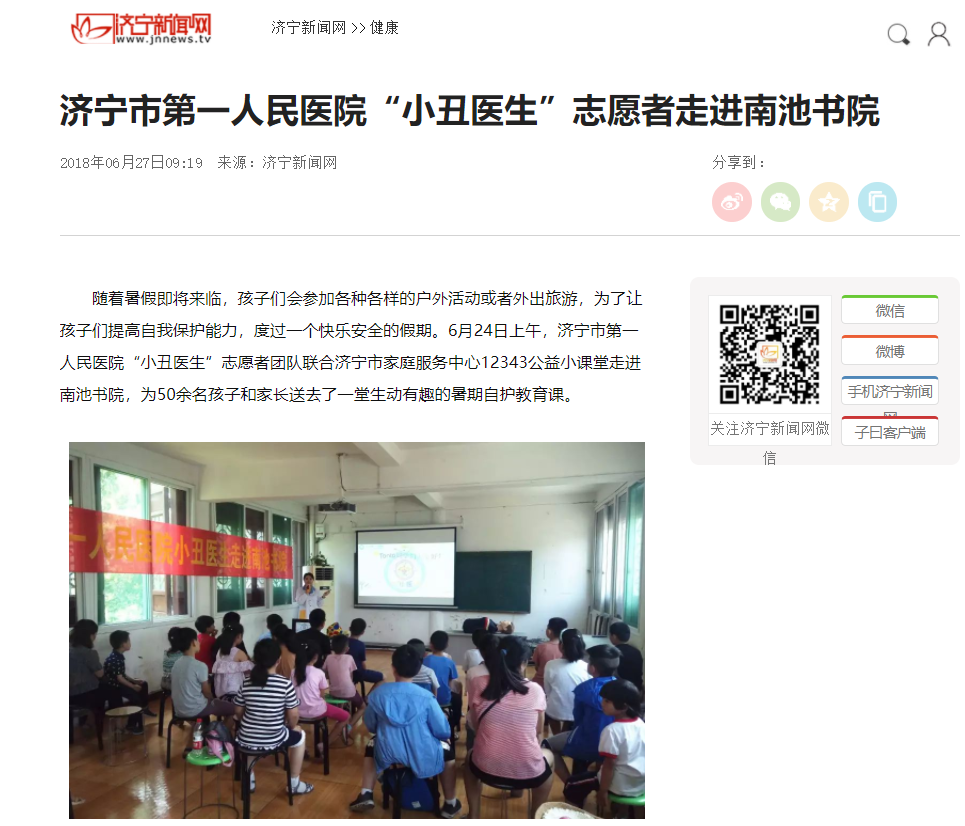 济宁新闻网--济宁市第一人民医院“小丑医生”志愿者走进南池书院