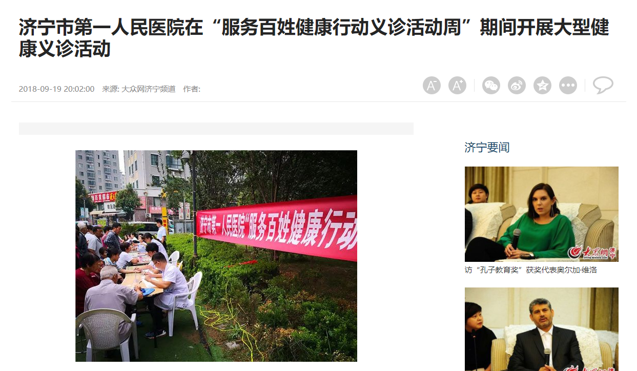 大众网济宁--济宁市第一人民医院在“服务百姓健康行动义诊活动周”期间开展大型健康义诊活动