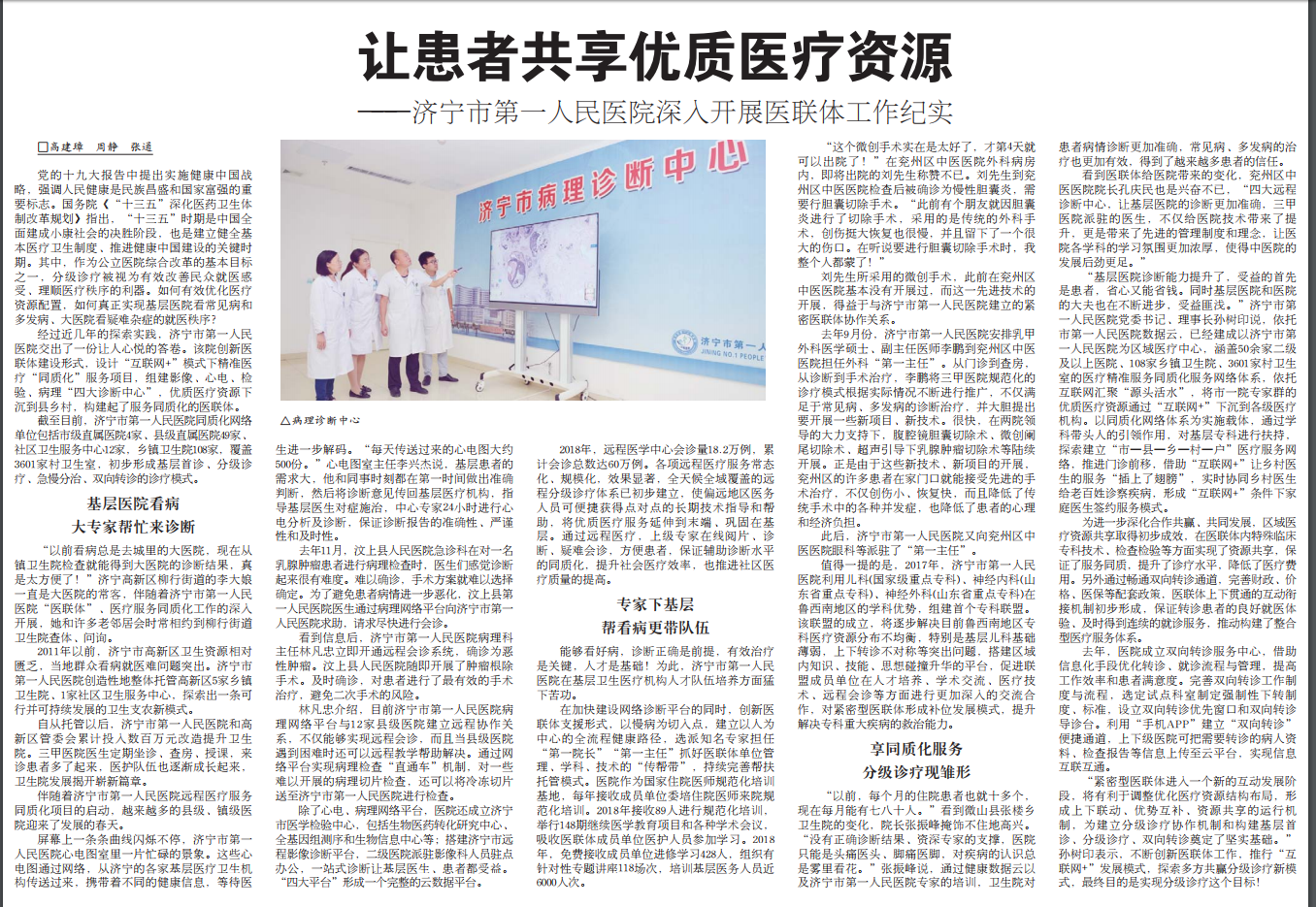 大众日报--让患者共享优质医疗资源 ——济宁市第一人民医院深入开展医联体工作纪实