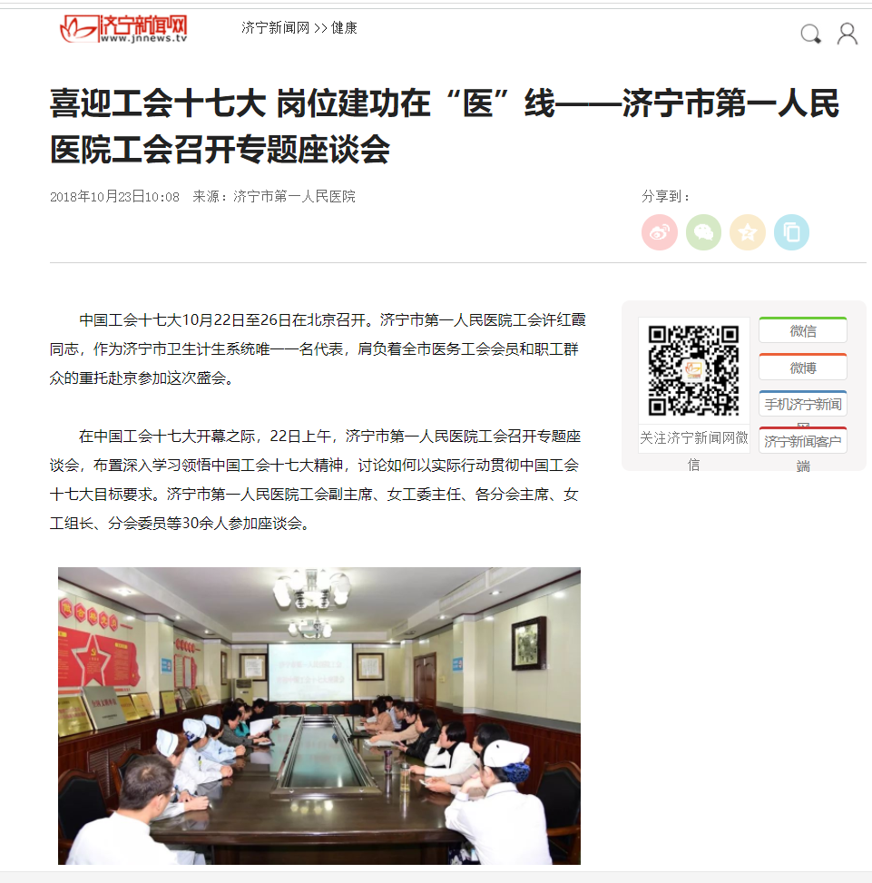 济宁新闻网--喜迎工会十七大 岗位建功在“医”线——济宁市第一人民医院工会召开专题座谈会