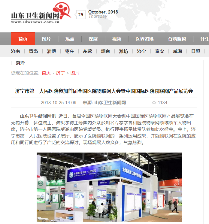 山东卫生新闻网--济宁市第一人民医院参加首届全国医院物联网大会暨中国国际医院物联网产品展览会