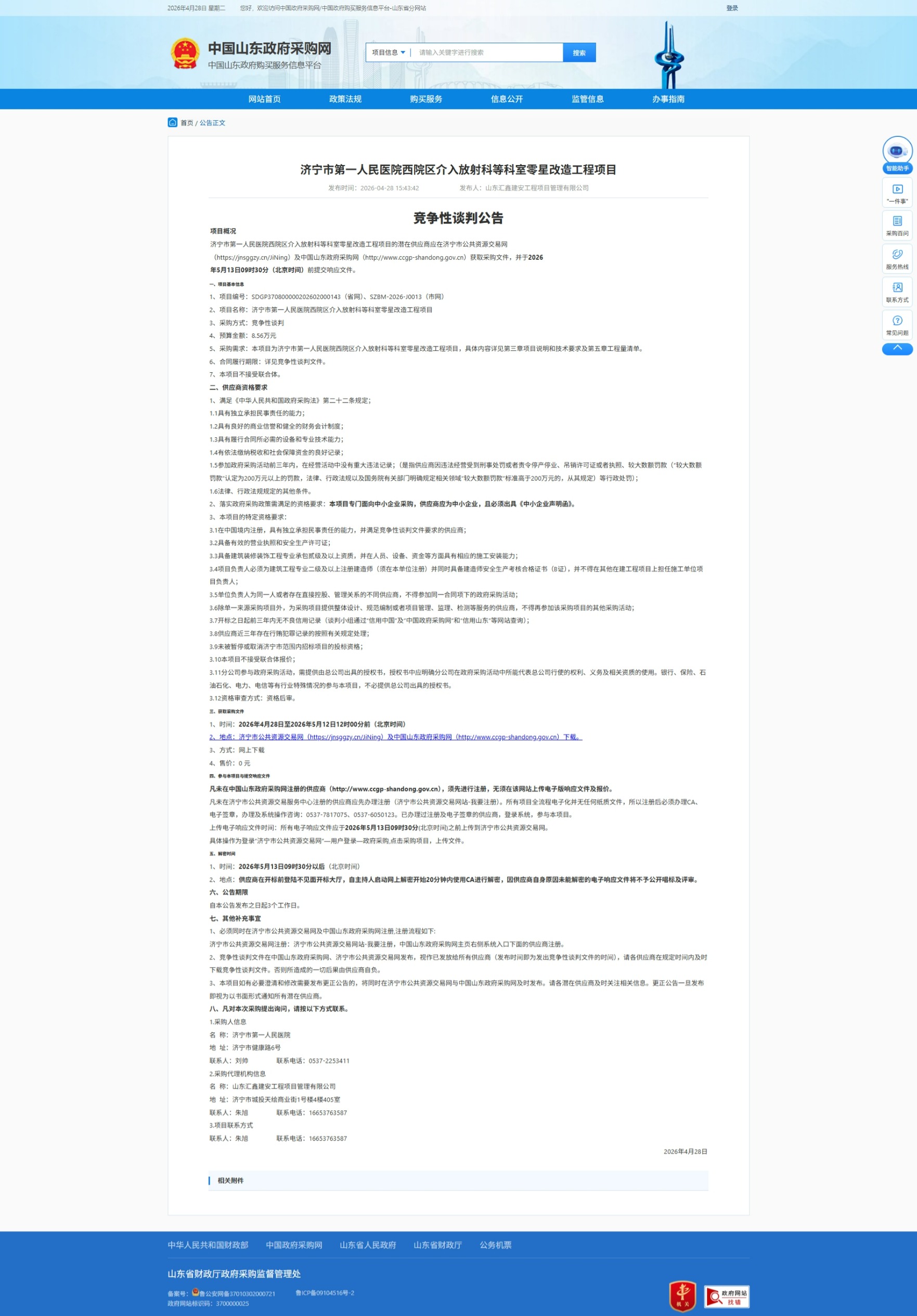 济宁市第一人民医院西院区介入放射科等科室零星改造工程项目竞争性谈判公告