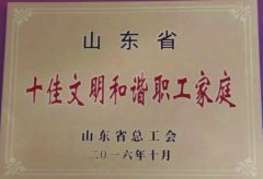 我院健康部职工张爱兰家被评为山东省十佳文明和谐职工家庭