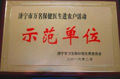 我院荣获济宁市卫计委“万名保健医生进农户”示范单位荣誉