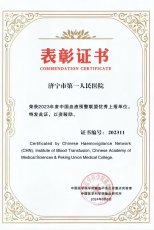 【喜讯】济宁市第一人民医院获评中国血液预警联盟优秀上报单位