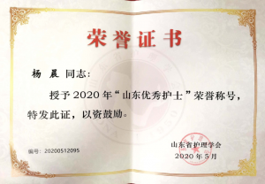 热烈祝贺我院重症医学科东院一病区副护士长杨晨被评为“山东优秀护士”