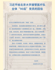 3月15日,习近平给北京大学援鄂医疗队全体90后党员回信,向...