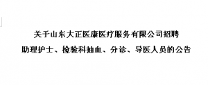 关于山东大正医康医疗服务有限公司招聘助理护士、检验科抽血、分诊、导医人员的公告