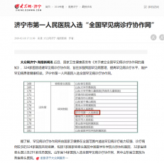 大众网--济宁市第一人民医院入选“全国罕见病诊疗协作网”