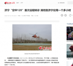 大众网山东--济宁“空中120”首次远程转诊 潍坊到济宁仅用一个多小时