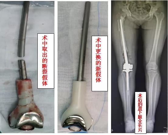 手术中,聂志奎主任团队通过在股骨远端2cm×1cm大小的开窗,巧妙的将断裂的股骨假体取出,并更换了新的肿瘤假体,避免纵劈股骨造成的手术创伤及经济负担,术中无任何血管神经损伤,手术取得圆满成功。术后3天,患者已经能在助行器的帮助下下地行走。