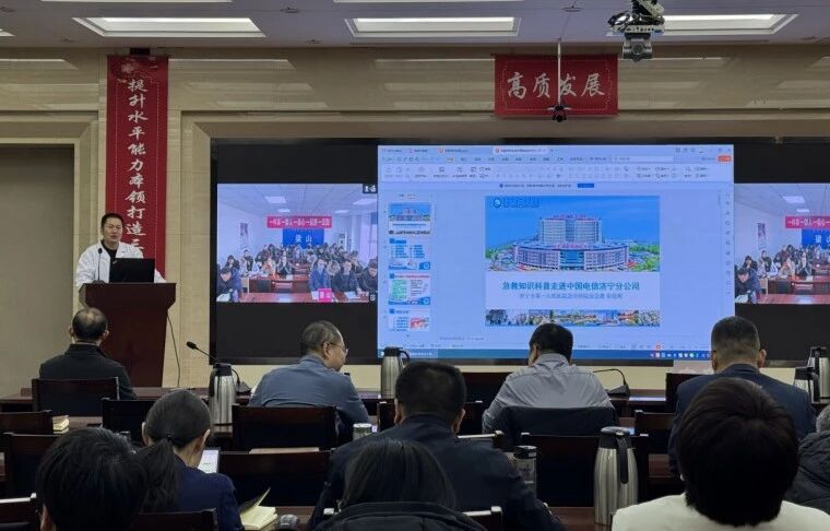 为进一步普及急救知识与技能,提高公众自救互救能力,济宁市第一人民医院急诊科“救在身边”公益科普团队走进中国电信济宁分公司,通过现场教学与视频会议的形式,为济宁电信县市区1000余名员工开展了一场生动实用、温暖人心的急救知识培训活动。