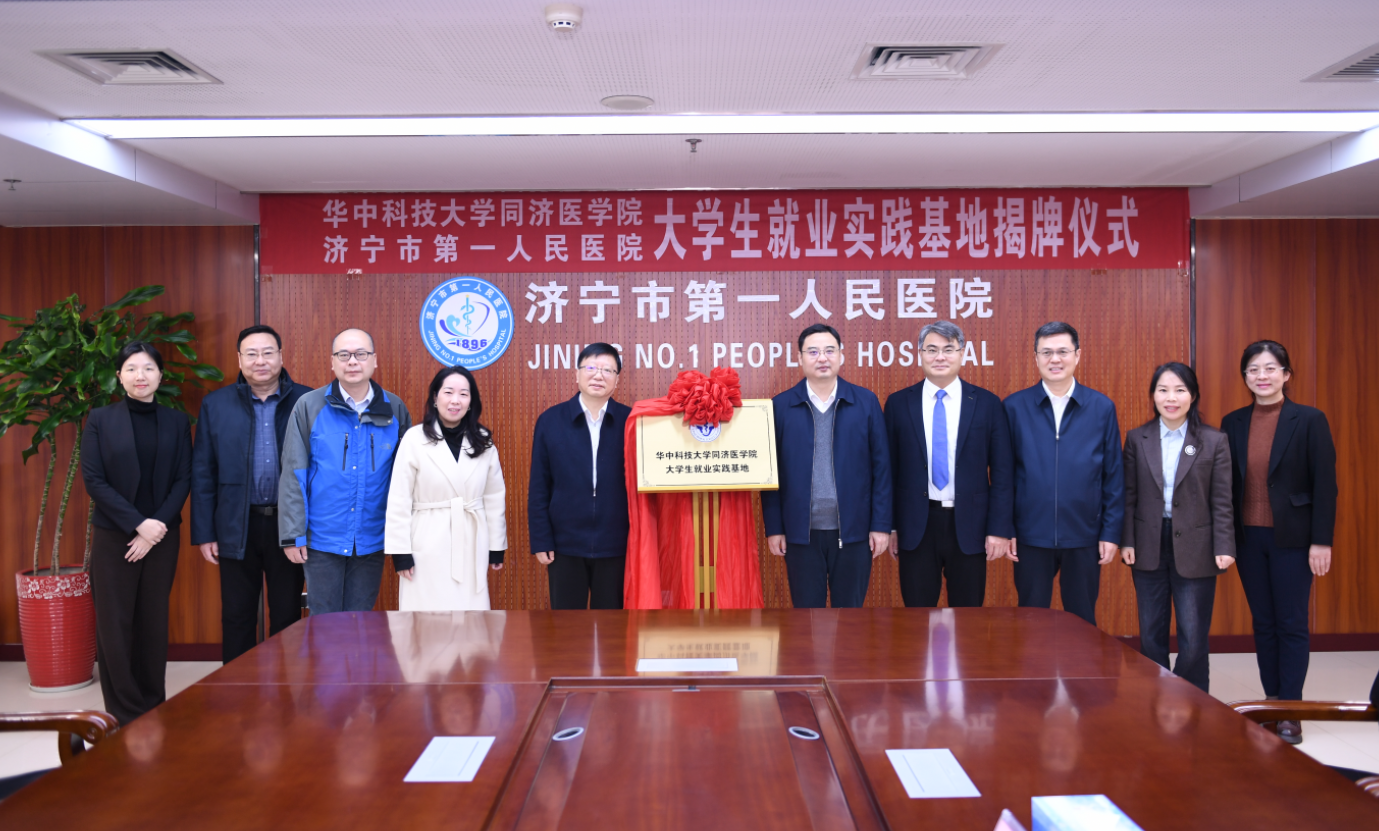 济宁市第一人民医院与华中科技大学同济医学院合作签约暨“大学生就业实践基地”揭牌仪式在济宁市第一人民医院医师培训楼举行。华中科技大学同济医学院党委副书记、纪委书记陈秋生一行莅临医院调研交流。医院党委书记钟海涛、院长冯雷及领导班子成员、相关职能部室负责人参加,仪式由党委委员、副院长韩捷主持。